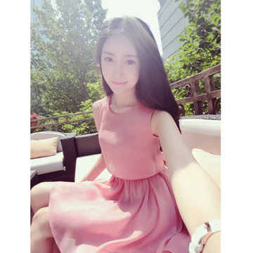 蝴蝶結(jié)夏高檔韓國絲緞無袖假2件套大擺甜美連衣裙短款 8623# /