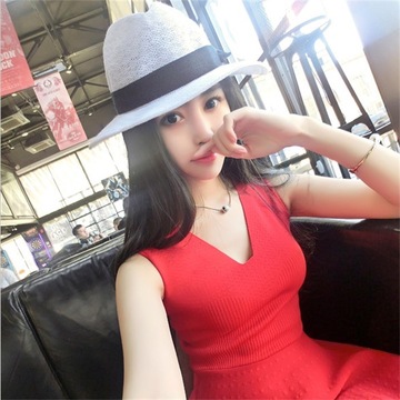 2016夏季新款女裝針織背心裙子中長款名媛露肩蓬蓬裙閨蜜裝連衣裙 /