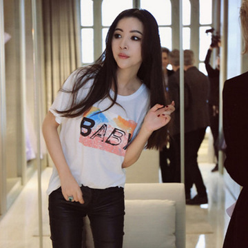 2016新款歐美夏裝潮牌baby字母權(quán)志龍情侶裝男女圓領純棉短袖t恤 /