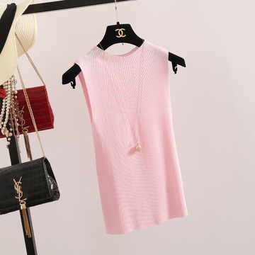 新款韓版半高領冰絲針織背心修身顯瘦無袖吊帶打底衫女士上 /