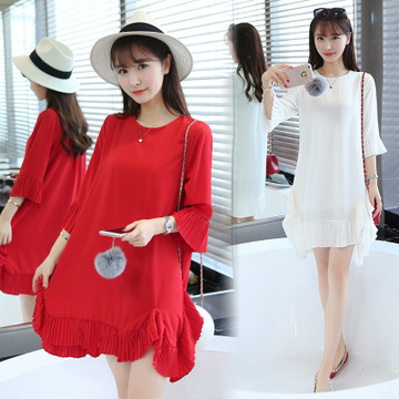 韓范學生甜美可愛百搭五分袖荷葉邊寬松雪紡大碼連衣裙 /