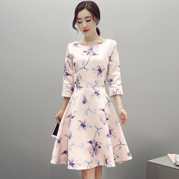 小香風收腰顯瘦碎花印花連衣裙2016春夏新款韓版女裝中長款A字裙 /