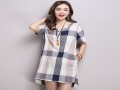 大碼女裝文藝范小清新格子休閑襯衫2016夏季新款寬松棉麻休閑襯衣 /