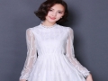 2016春裝新款韓版鏤空刺繡顯瘦長袖打底衫蕾絲連衣裙 /