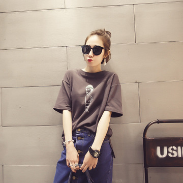 2016夏裝新款韓版卡通人物印花下擺開(kāi)叉短袖T恤女廠家批發(fā) /