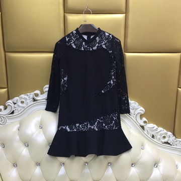 2016春季新款歐美花邊圓圈連衣裙 修身性感中長袖連衣裙子 /
