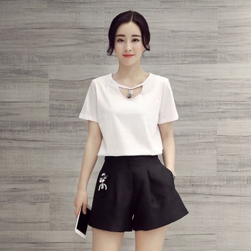 2016夏季新款女裝韓版時尚圓領(lǐng)短袖T恤女休閑顯瘦闊腿褲短褲套裝 /