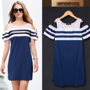 2016夏季新款波西米亞海軍風時尚條紋露肩女裝連衣裙 /