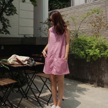 現貨 韓國NEW ARRIVAL 小清新無袖寬松連衣裙 /