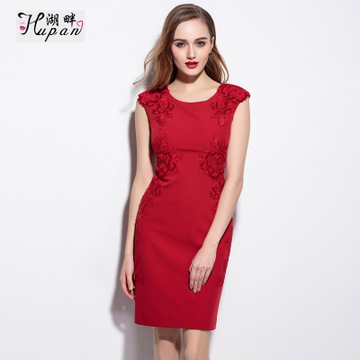 高檔女裝重工盤花繡連衣裙 撞色繡花圓領無袖高貴氣質包臀背心裙 /