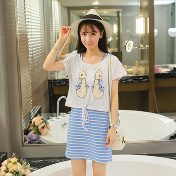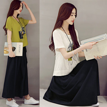 棉麻連衣裙短袖上衣套裝夏裝新款 /