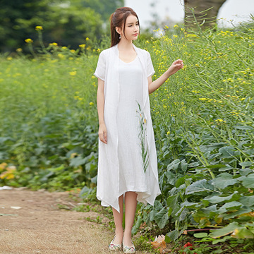 2016年夏季 民族風文藝手繪水仙花假兩件連衣裙 /