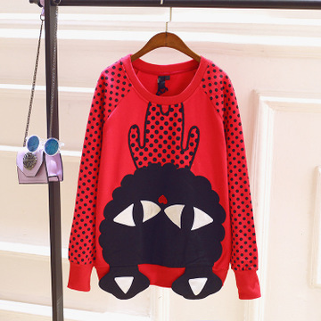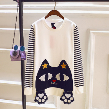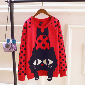 2016春秋新款韓版卡通貓毛圈寬松套頭圓領(lǐng)長袖女式衛(wèi)衣外套 /