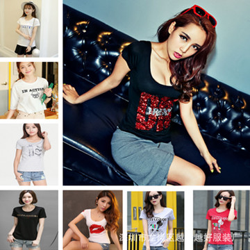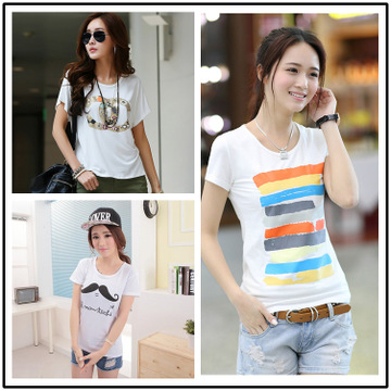 2016夏季女裝打底衫短袖t恤女 韓版印花女士T恤地攤貨源1688網 /