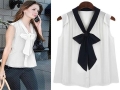 2016歐美款蝴蝶裝飾領(lǐng) 顯瘦無袖雪紡襯衫 廠家直銷 /