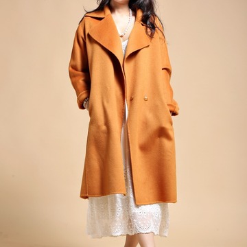 2016新款橘紅毛呢外套歐貨新品時尚專柜女士外套羊毛保暖上衣 /