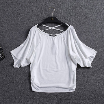 新款明星溫碧霞同款中袖大碼女裝 休閑寬松打底衫女顯瘦白色t恤 /