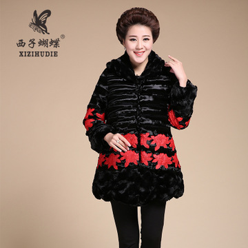 2015冬季新款仿貂皮大衣 加棉加絨加厚大碼繡花棉衣 一件代發 /