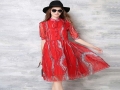 歐洲站2016夏季新款歐美優(yōu)雅修身翻領(lǐng)印花雪紡連衣裙 一件代發(fā) /