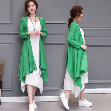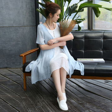 2016夏季女裝棉麻新款時尚顯瘦短袖長裙兩件套棉麻連衣裙服裝廠 /
