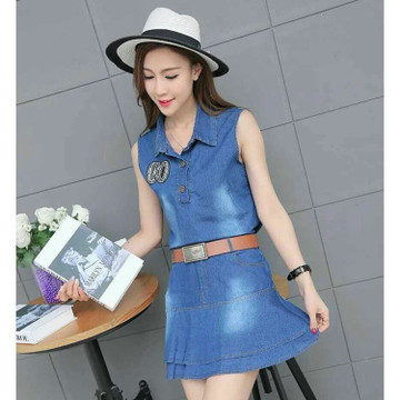 2016夏新款韓版時(shí)尚名媛修身無(wú)袖上衣+半身A字裙牛仔裙套裝 /