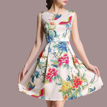 淘寶爆款2016夏裝新款時尚印花修身連衣裙大碼顯瘦大擺裙一件代發 /