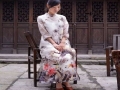 2016春裝新款 高檔大牌中國風水墨印花印花連衣裙七分袖改良旗袍 /