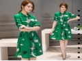2016夏裝新品時尚韓版小香風天鵝印花收腰顯瘦真絲連衣裙 /