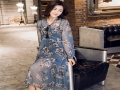 2016女春雪紡印花長款連衣裙 /