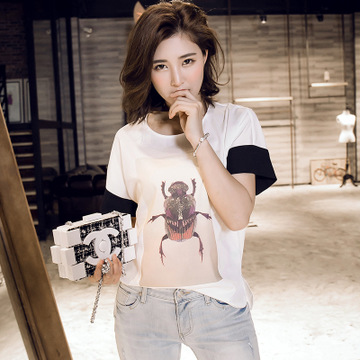 東大門2016年春款女士T恤袖口拼色 /