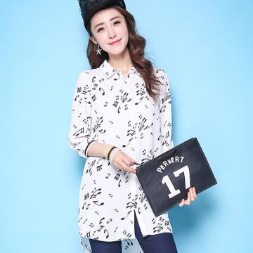 拉夏貝爾2016春夏新款Puella五角星音符長袖襯衫上衣女20007769 /