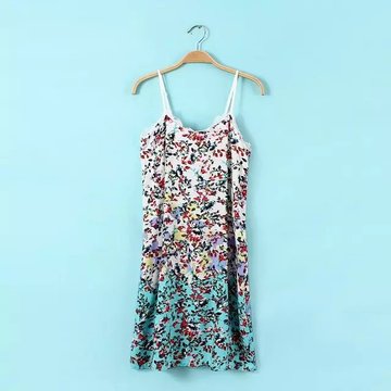外貿批發速賣通歐美風時尚甜美碎花人棉數碼定位漸變吊帶裙連衣裙 /
