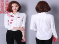 實拍現貨2016春新款時尚紅唇口紅印花長袖雪紡白襯衫女休閑 /