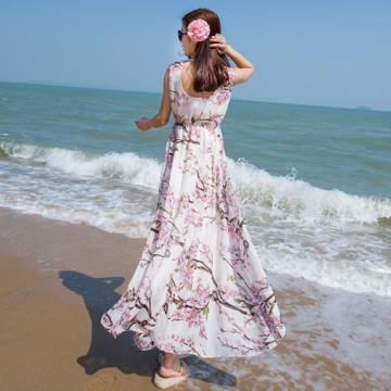 夏裝新款波西米亞長裙沙灘裙海邊度假修身雪紡連衣裙女 /
