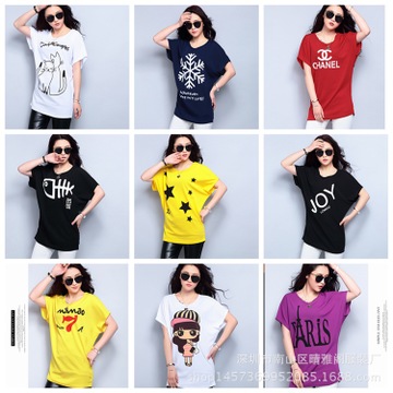新款夏裝韓版大碼女裝寬松短袖t恤 時(shí)尚印花蝙蝠衫短袖女式t恤 /