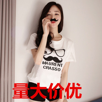 阿里巴巴1688女裝上衣服潮印花胡子韓版寬松短袖t恤女批發打底衫 /