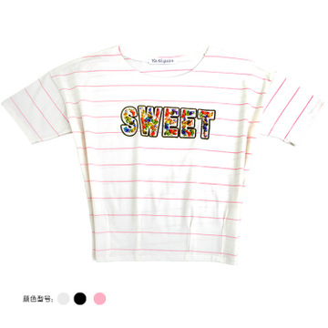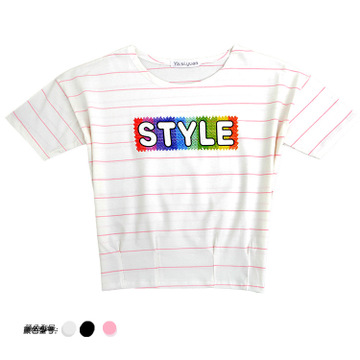 2016夏季新女短袖收腰蝙蝠條紋t恤女08英文款 /