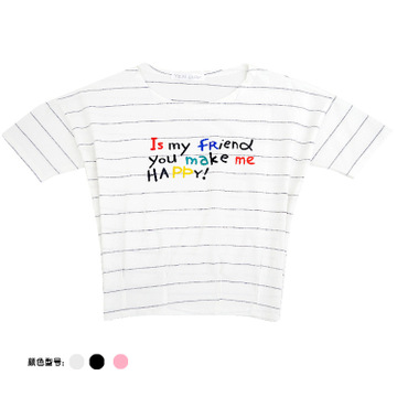 2016新女 夏季短袖收腰蝙蝠條紋t恤女英文句子 /