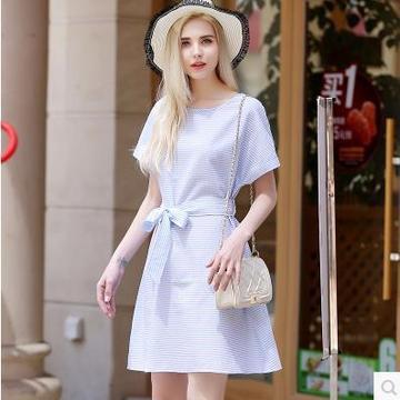 2016新款加大碼女裝斤胖妹妹女夏連衣裙顯瘦條紋中裙 連衣裙 /