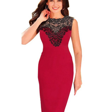 黑色蕾絲拼接無袖連衣裙 /