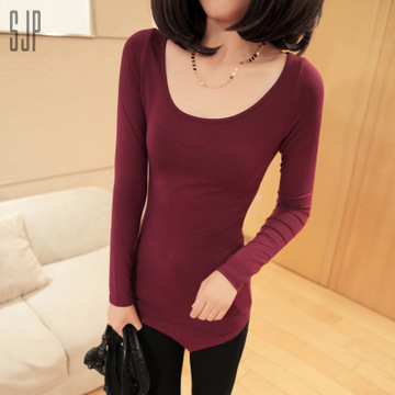 2016夏裝新款女裝緊身長袖T恤歐美衣服修身純色打底衫女春秋內搭 /