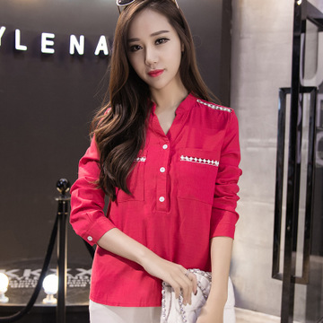 實拍2016新款春季裝襯衣職業長袖修身韓版女V領休閑打底上衣 /