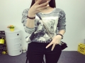 2秋裝新款女裝休閑寬松女式針織衫 圓領套頭人形印花韓范潮女毛衣 /