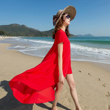2016夏裝新款波西米亞雪紡連衣裙度假沙灘裙不規則長裙燕尾禮服 /