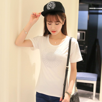 短袖t恤女寬松學(xué)生韓國2016夏裝印花中長款韓版上衣女t恤夏 /