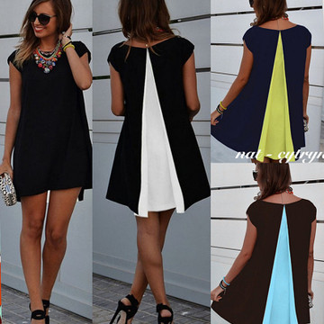 預售!速賣通EBAY 亞馬遜 新款休閑寬松大擺拼接雪紡裙連衣裙女裝 /