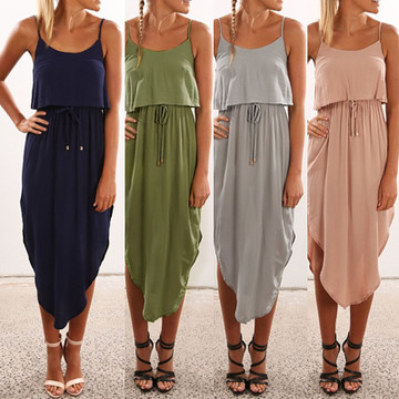 預售!速賣通EBAY 亞馬遜 新款性感露肩吊帶休閑不規則連衣裙女裝 /