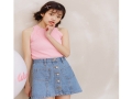 實拍夏A字裙牛仔短裙半身裙金屬排扣高腰顯瘦半裙 /