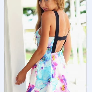 歐美爆款2016夏季女裝印花V領掛脖性感連衣裙外貿女裝貨源原單 /