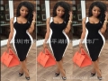ebay速賣通熱賣新款爆款2016歐美風低胸性感修身拼色包臀連衣裙 /